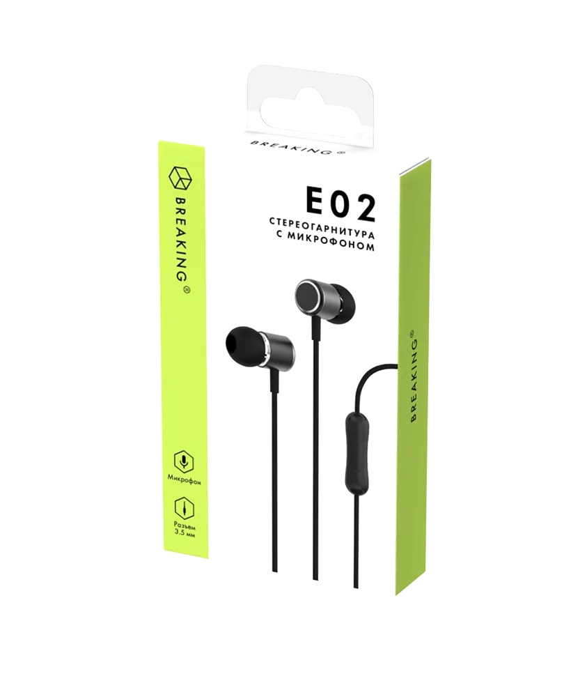 Гарнитура мобильная Breaking E02 (Черный) ) коробка (25120)