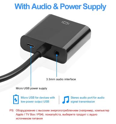 Адаптер HDMI в VGA + AUX + MicroUSB конвертер формата типа «папа-мама»,1080P, для PS4/ПК/ТВ-приставки