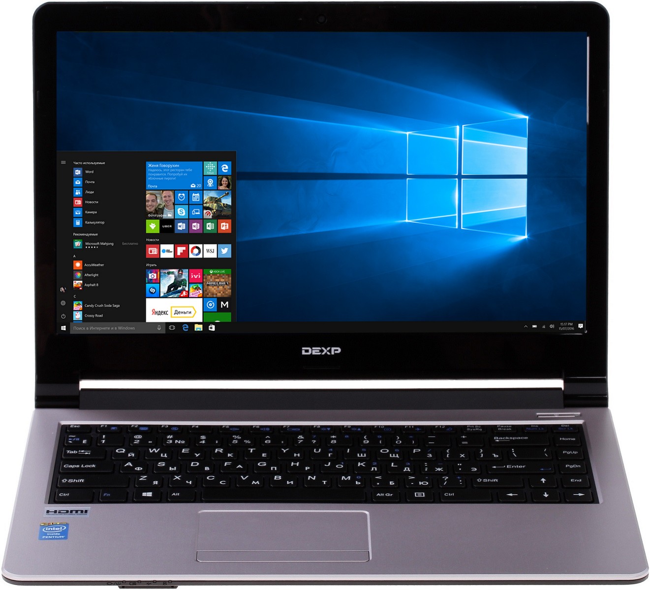 Ноутбук DEXP Athena T106 имеет экран с диагональю 14". Устройство обеспечивает быстрое выполнение задач за счет мощного 4-ядерного процессора Pentium N3700. Модель имеет небольшие габариты (242х340х26.5 мм) и небольшой вес (2.1 кг), что обеспечивает портативность и делает работу проще. Заряда аккумулятора Li-ion может хватить на несколько часов работы.